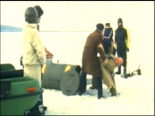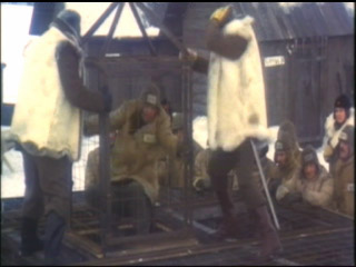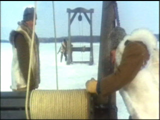 durch das kalte Wasser, zum nächsten gezogen - die sibirische Version des "Kielholens" und