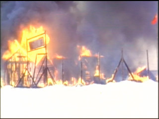 in ihre Hütten einsperrt und diese anzündet, kommt es zum Aufstand,