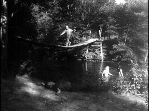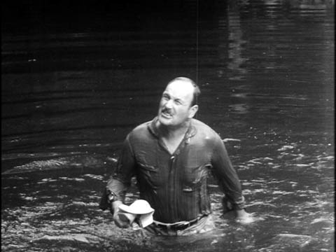 der Farmer durch einen üblen Scherz seiner Töchter im Bach gelandet