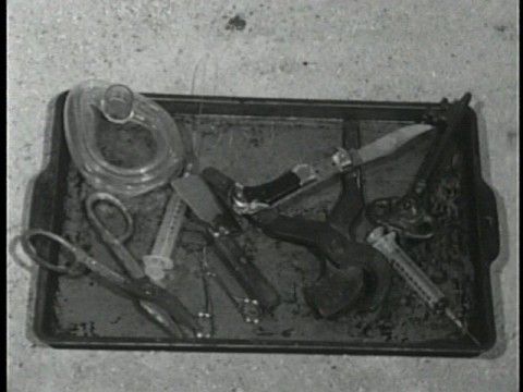 Nachdem der Killer sein Werkzeug ausgebreitet hat, beginnt er sein Opfer