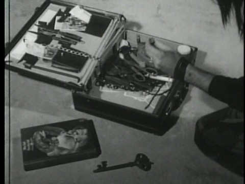 Die beiden gehen in den Keller, der Entführer öffnet seinen Koffer,