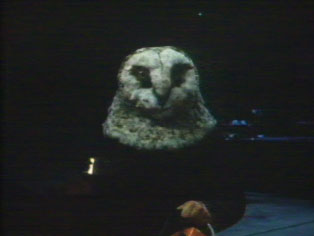 sich mittlerweile mit der Eulenmaske getarnt und den Theaterfundus